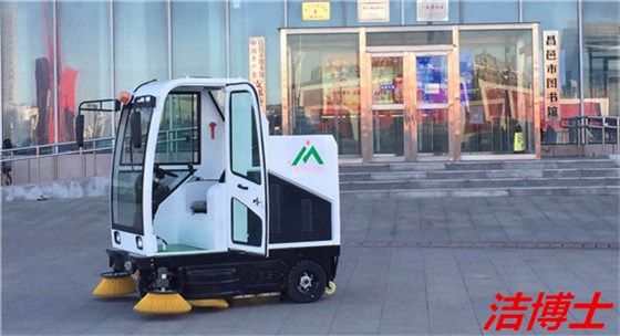 洁博士电动清扫车清扫昌邑剧院广场路面